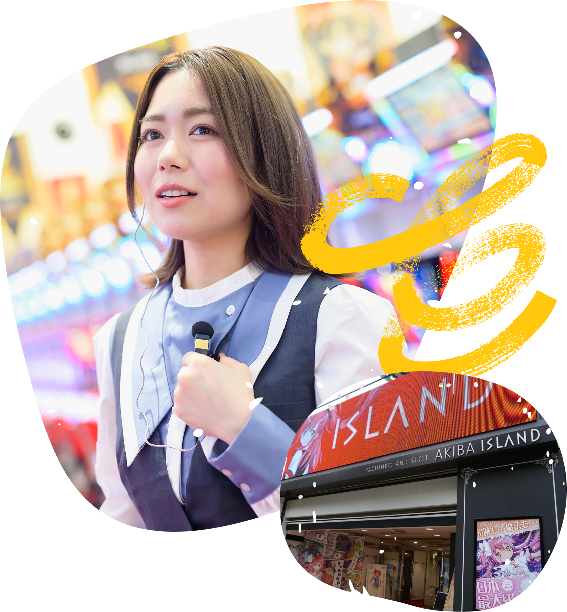 店舗ごとにカラーが異なるのがアイランドの特徴です。お客様の層や遊技機の構成、接客スタイル、店内の雰囲気なども店舗によってさまざまです。これは、現場に大きな裁量があるからこそ実現できていることだと思います。また、学歴や年次ではなく、実力や主体性を重視して仕事や役割を任せてくれる点も、アイランドならではの魅力です。