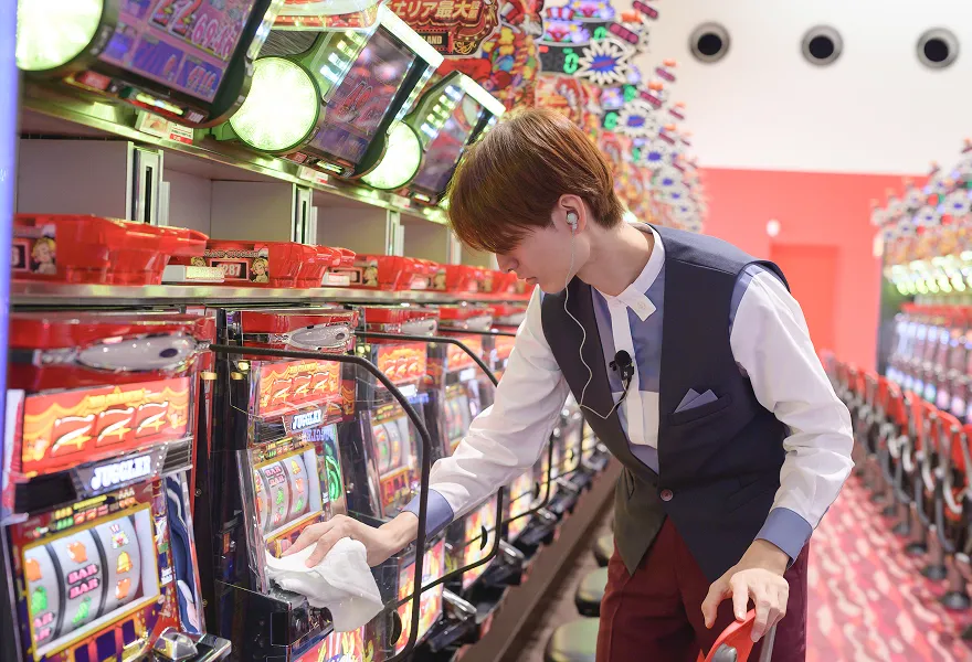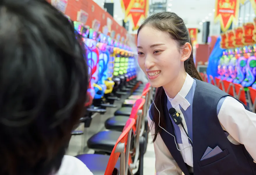 ホール内やパチンコ台の清掃、メダルの運搬・交換のお手伝い、お客様のご案内やお困りごとのサポートなどが主なお仕事です。